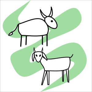 Once when a bull was being pursued by a lion, he fled into a cave where a wild goat was living. The goat was a grouchy creature and began attacking the bull by butting him with his horns.