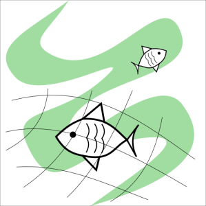 As a fisherman was drawing in his net that he had cast into the sea, he noticed that it was full of all sorts of fish. However, little fish escaped through the meshes of the net and swam back into the deep water, while the big fish remained trapped and were hauled into the boat.